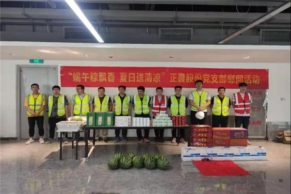 6月11日,公司党支部在智能交通产业园项目开展了“端午粽飘香 夏日送清凉 ”主题活动,普及安全生产知识的同时还为奋战在一线的员工送去西瓜、凉茶、藿香正气水、洗漱大礼包等防暑降温慰问品,让员工切实感受到公司及组织的关爱。
