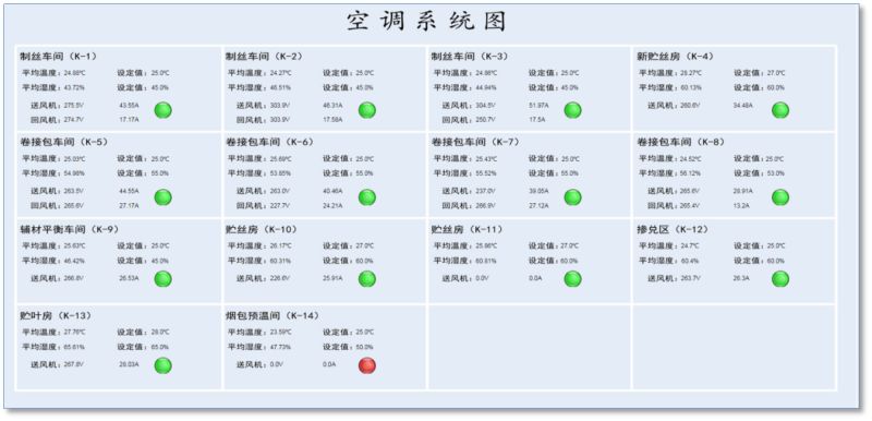 功能介绍:作为工控系统的集中监控,展示现场各工控系统的监控画面及参数。包括【空压控制系统】【制冷控制系统】【空调控制系统】。