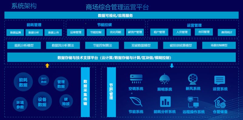 有效检测商场内所有能耗设备并记录耗能情况,在为使用者提供能源管理、统计分析等功能的同时,还可以提供智能反馈以及节能优化控制。对商场内租赁、合同、费用收取等方面的优化管理。
