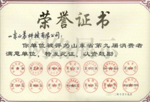 山东省第九届消费者满意单位